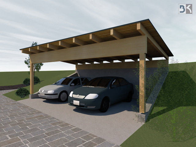 Neubau eines Schutzdaches für zwei Kraftfahrzeuge