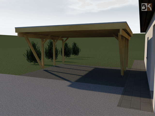 Neubau eines Schutzdaches für zwei Kraftfahrzeuge und einer Gerätehütte